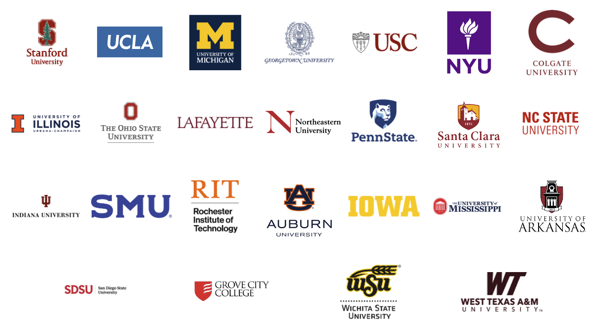 University names and logos are trademarks of their respective owners. Use does not imply endorsement.